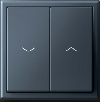 - Выключатель для жалюзи. Позволяет управлять жалюзи, рольставнями, тентами и шторами с электроприводом. При нажатии кнопка передает импульс электромотору, обеспечивая движение занавеса в определенном направлении. Механизм имеет функцию блокировки при одновременном нажатии на две клавиши