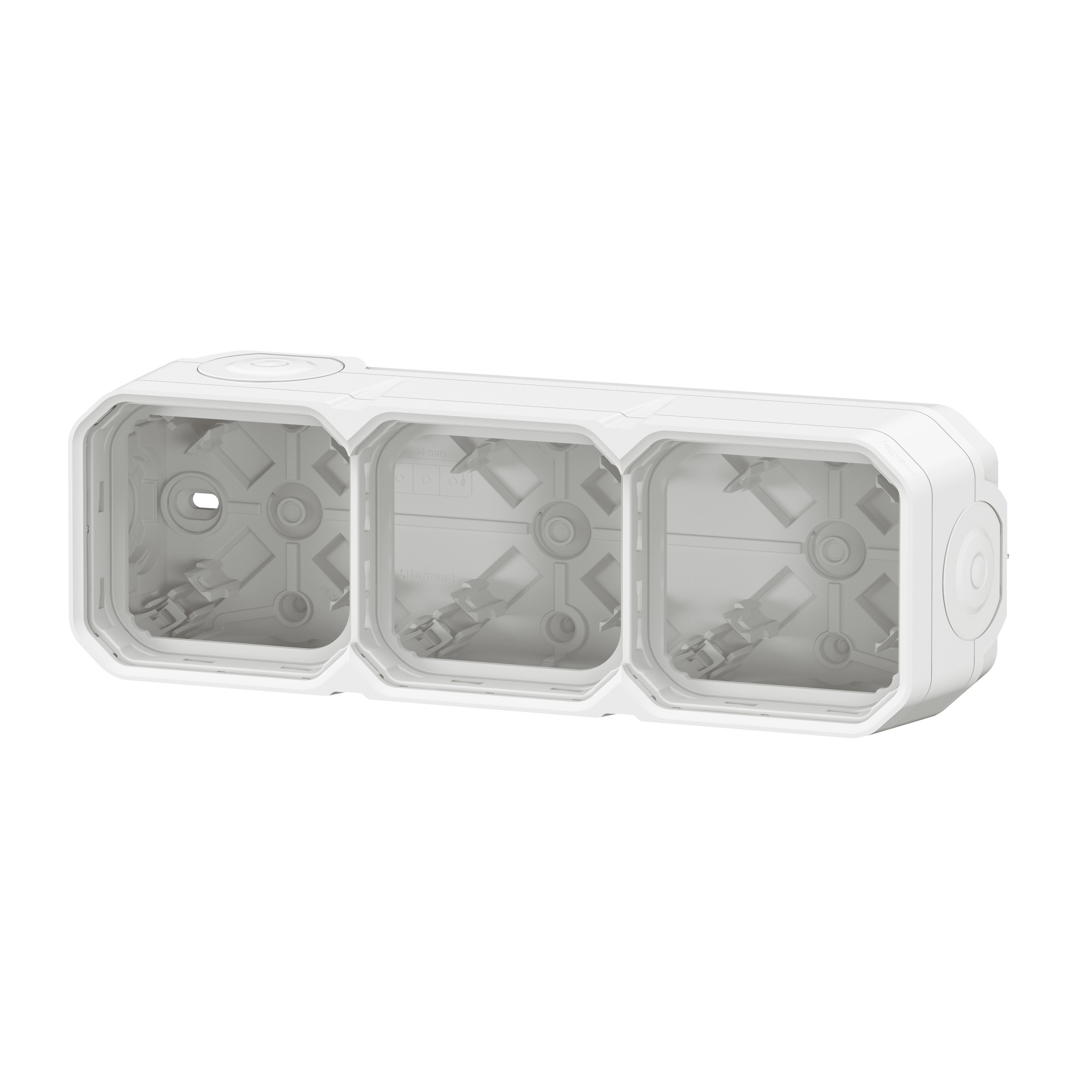 Водонепроницаемый накладной корпус LEGRAND Plexo (артикул 069688L) предназначен для установки трех механизмов как в горизонтальном, так и в вертикальном положении. Белый корпус обеспечивает надежную защиту IP55 от пыли и водяных брызг, что делает его идеальным решением для влажных и пыльных помещений. Простая установка и возможность гибкой прокладки кабелей обеспечивают удобство при монтаже.