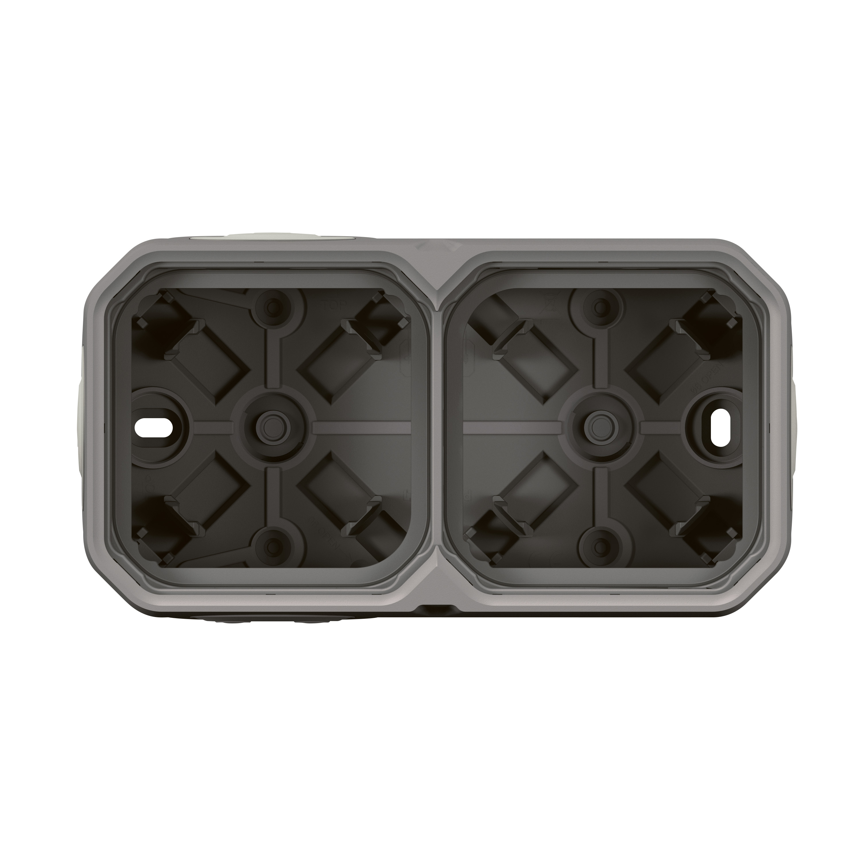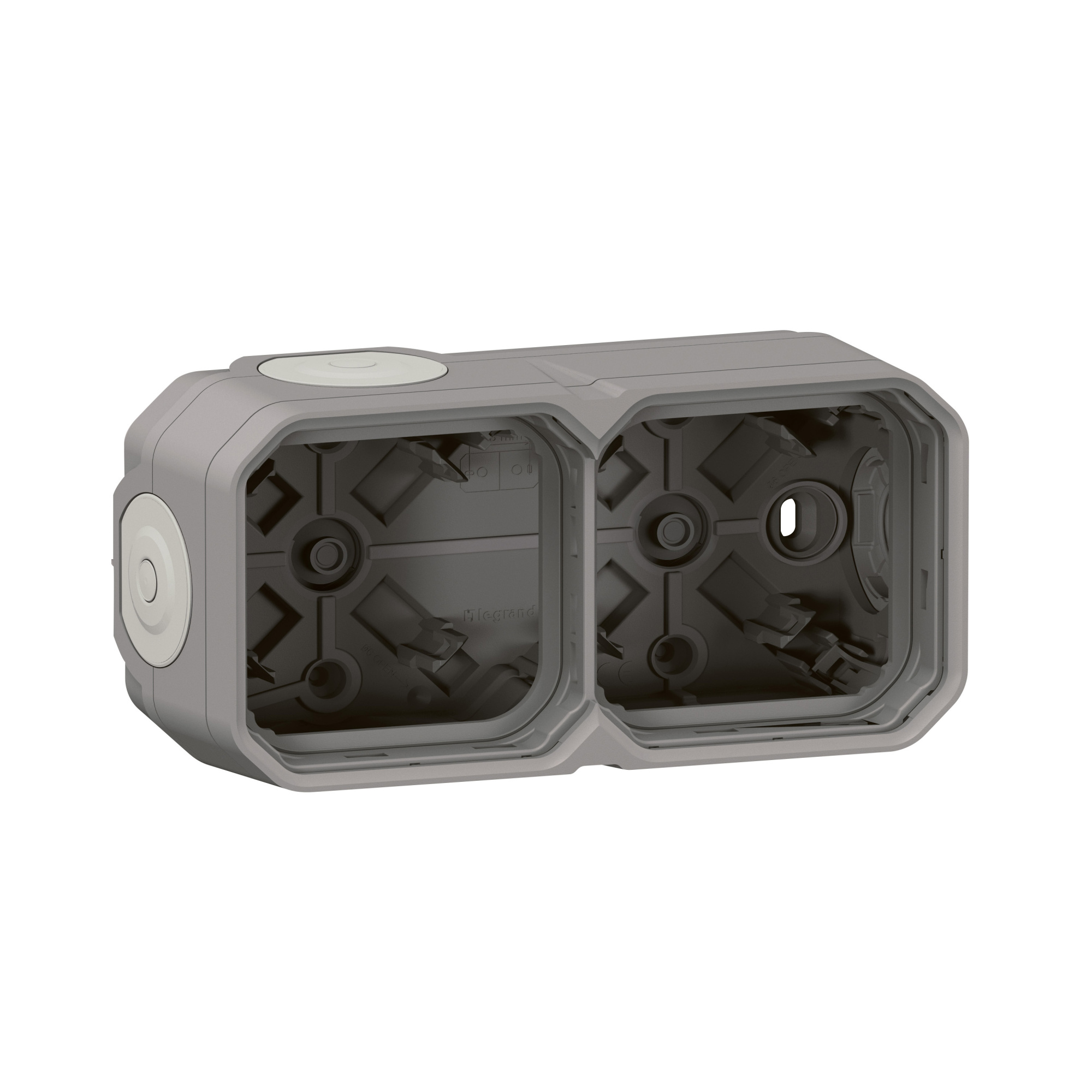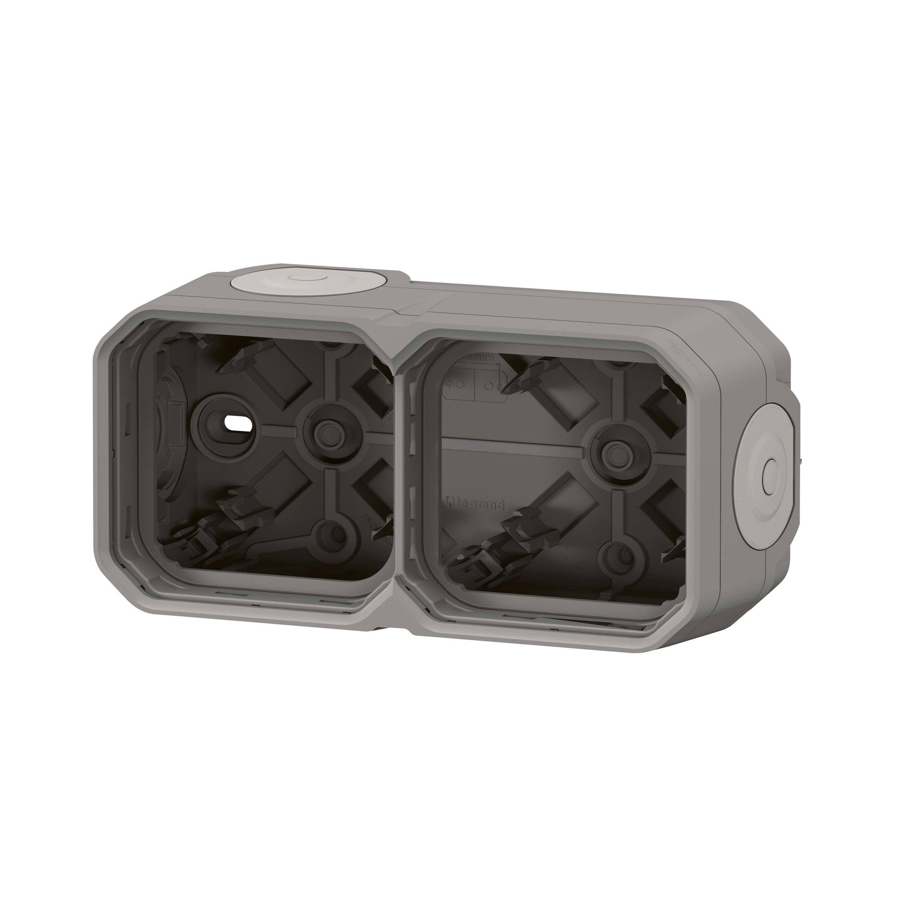 Накладной водонепроницаемый корпус LEGRAND Plexo (артикул 069672L) предназначен для монтажа двух горизонтальных или вертикальных механизмов. Корпус выполнен в сером цвете и обеспечивает защиту IP55, надежно защищая подключенные устройства от пыли и воды, что делает его идеальным для использования во влажных помещениях.
