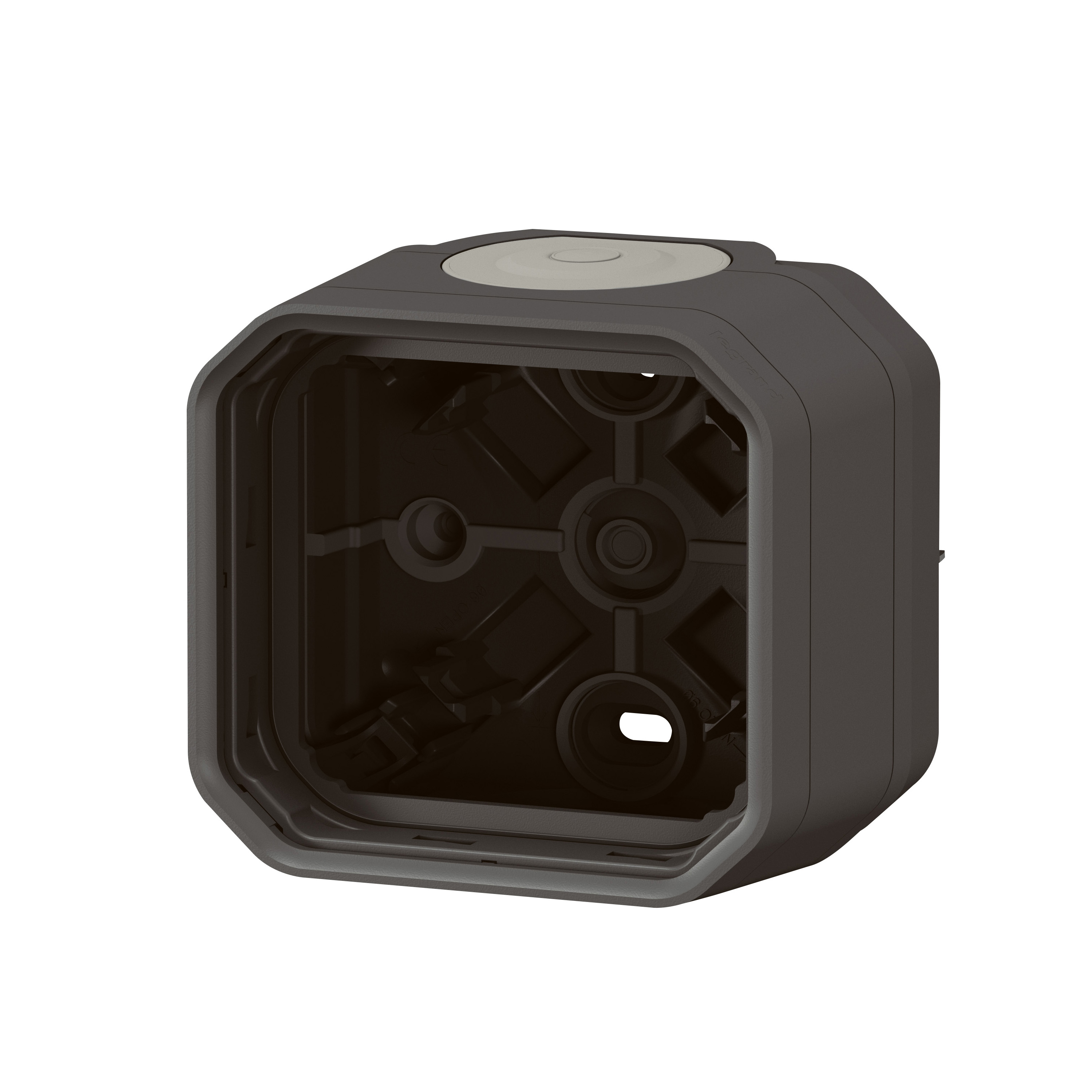 Корпус Legrand Plexo представляет собой накладной блок на одну позицию с двумя мембранными вводами (2 x 1 вход). Конструкция допускает монтаж как в горизонтальном, так и в вертикальном положении. Габариты изделия: ширина 82 мм, высота 85 мм, глубина 57 мм. Материал — термопластик без галогенов, с матовой поверхностью в цвете антрацит (RAL 7016). Диапазон рабочих температур от -10°C до +40°C.