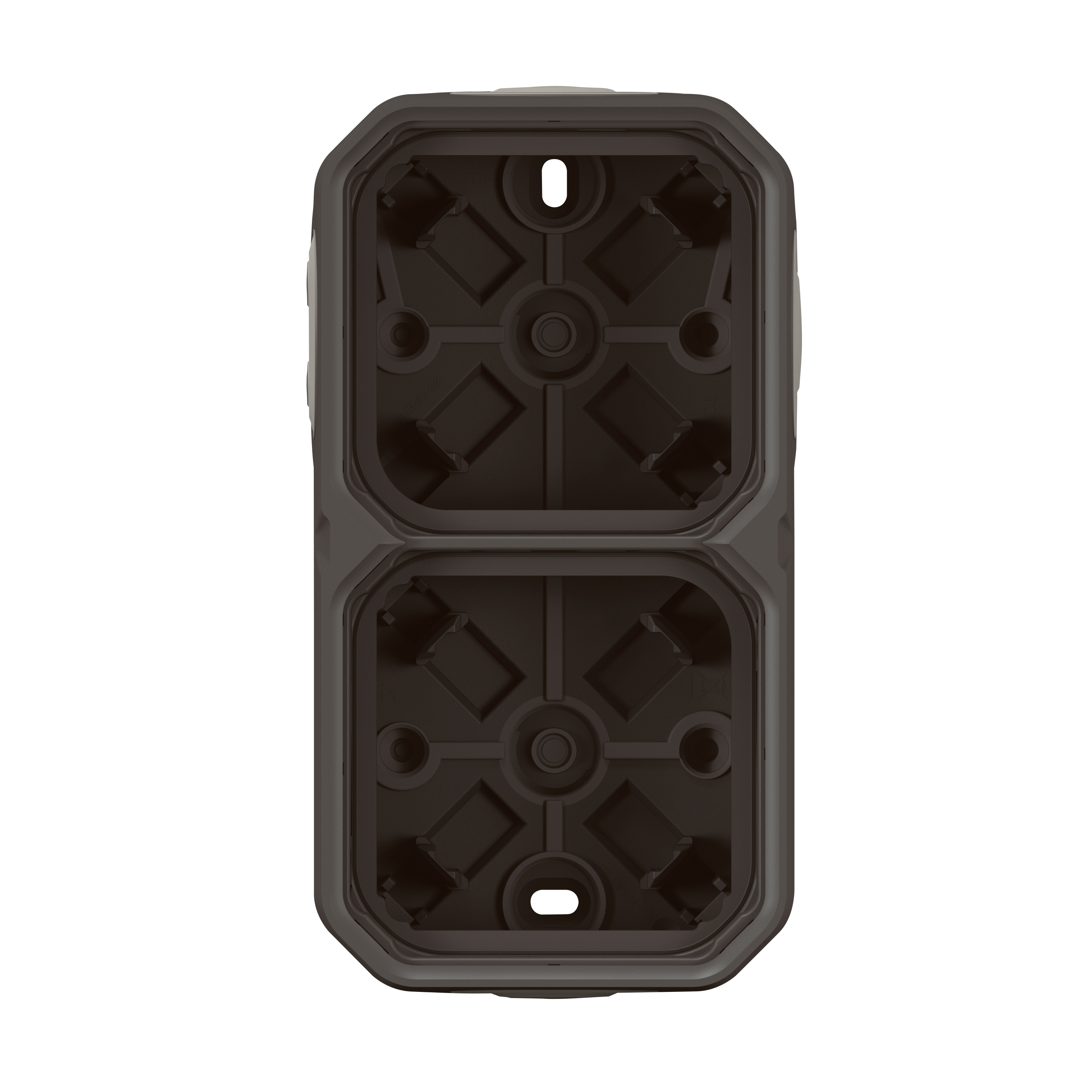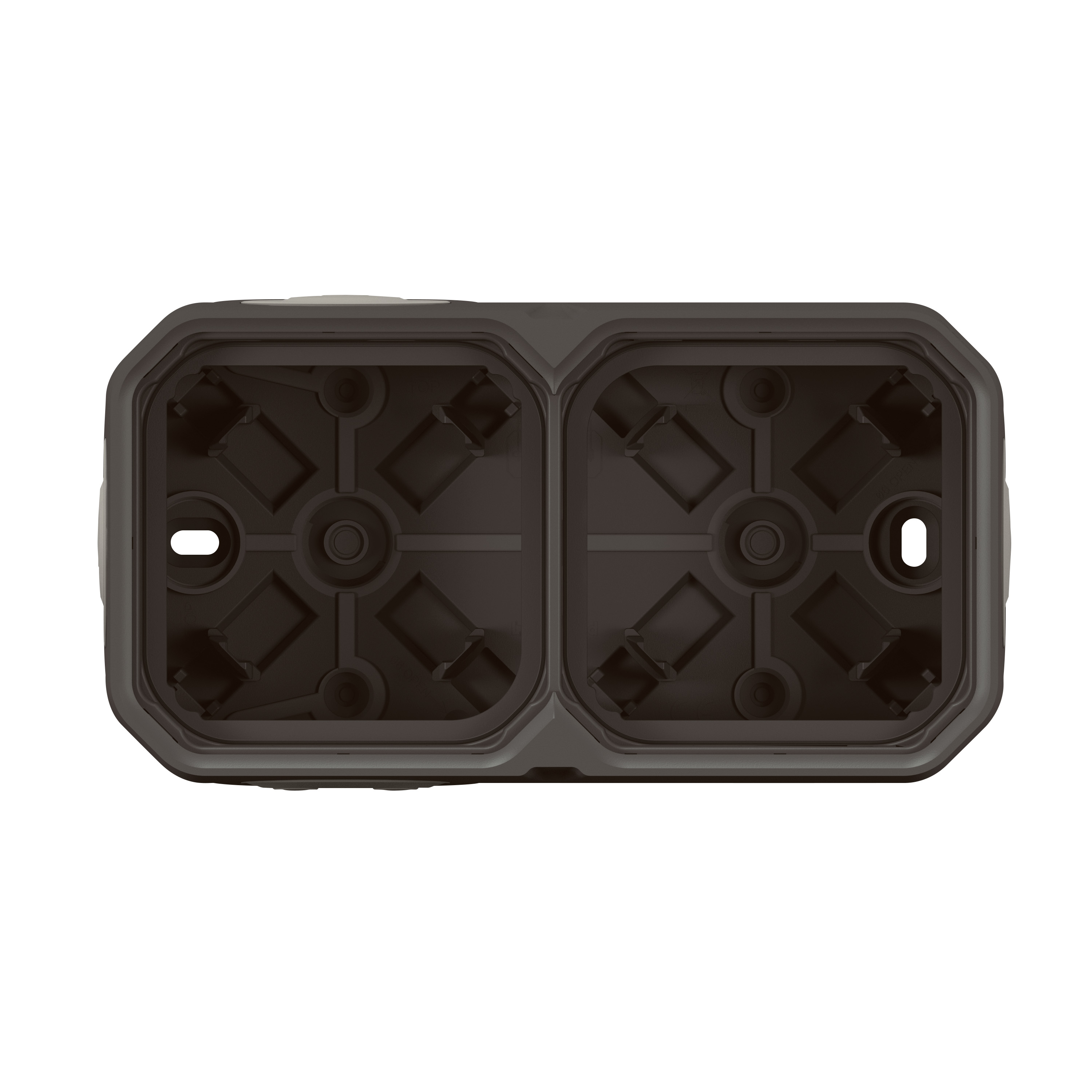 Корпус Plexo на две позиции без перегородки имеет размеры: ширина 82 мм, высота 155 мм, глубина 57 мм. Конструкция выполнена из негорючего термопластика без галогенов, поверхность матовая. Корпус оснащён мягкими мембранами, которые позволяют без усилий выполнять ввод кабеля диаметром до 17 мм или использовать трубы диаметром 16–25 мм. Рабочая температура эксплуатации составляет от -10°C до +40°C, а хранения — от -25°C до +60°C.
