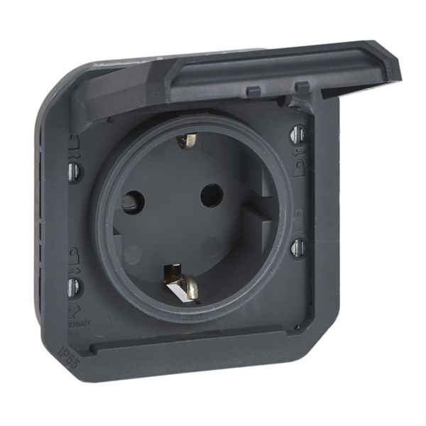 Розетка LEGRAND Plexo 069839L рассчитана на номинальный ток 16A и напряжение 250V. Она оснащена защитным контактом CEE 7/3 (тип F) и представляет собой полный механизм с декоративной антрацитовой накладкой. Корпус выполнен из термопластика без галогенов с матовой поверхностью, размеры розетки составляют 70,5x70,5x46 мм. Подключение осуществляется через винтовые клеммы для проводов сечением 1,5–2,5 мм². Розетка оборудована откидной крышкой и защитой от детей для безопасного использования.