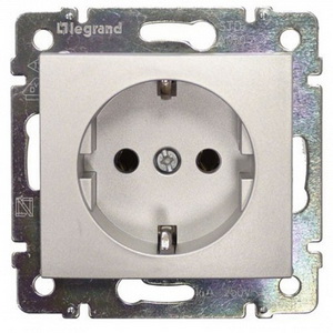 Розетка 2К+З винтовые зажимы немецкий стандарт 16A 770120 Legrand Valena цвет алюминий