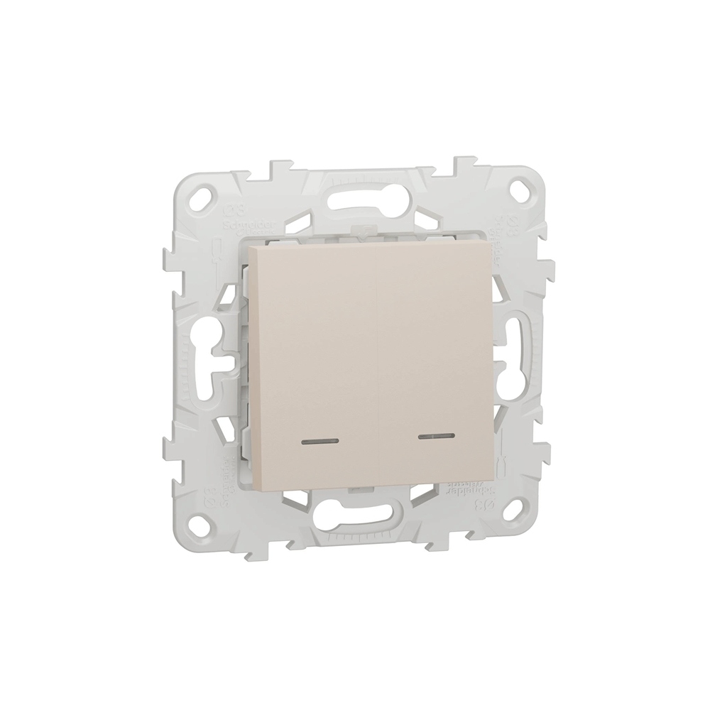 - Двухклавишный выключатель позволяет управлять двумя источниками света из одной точки.