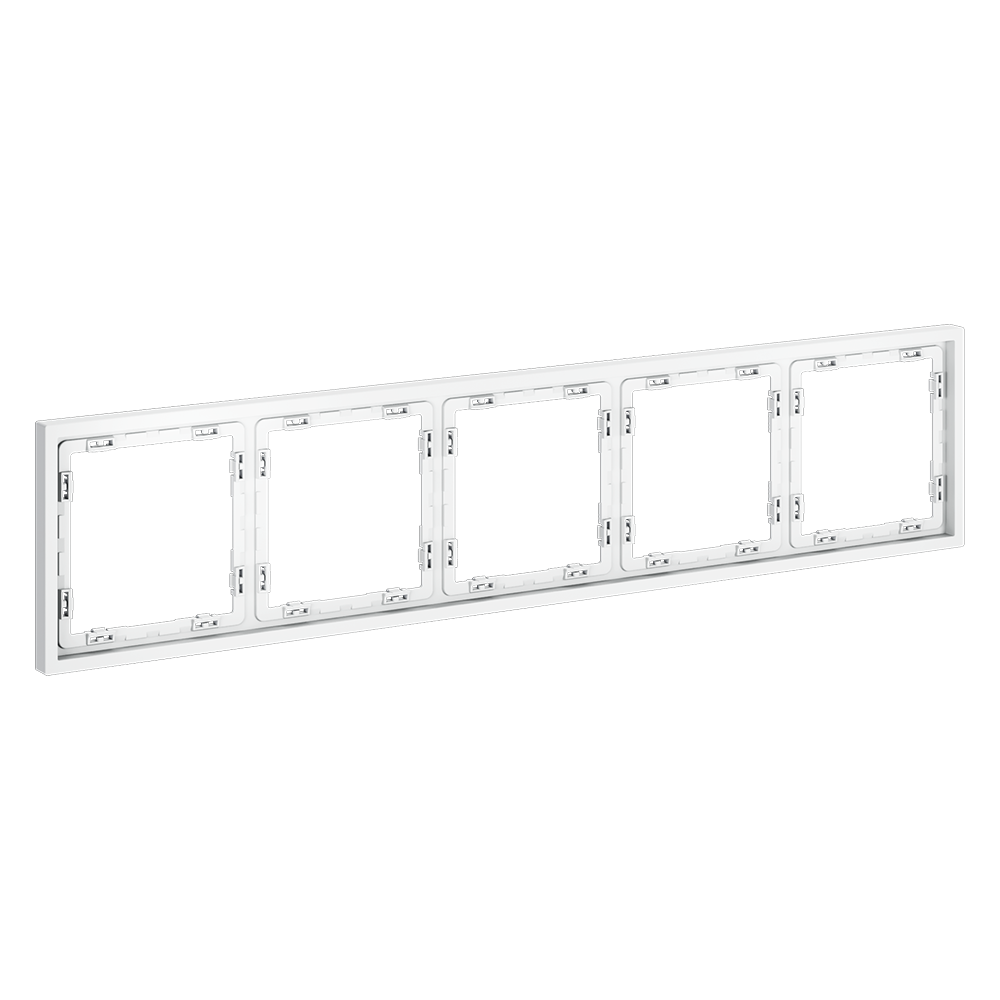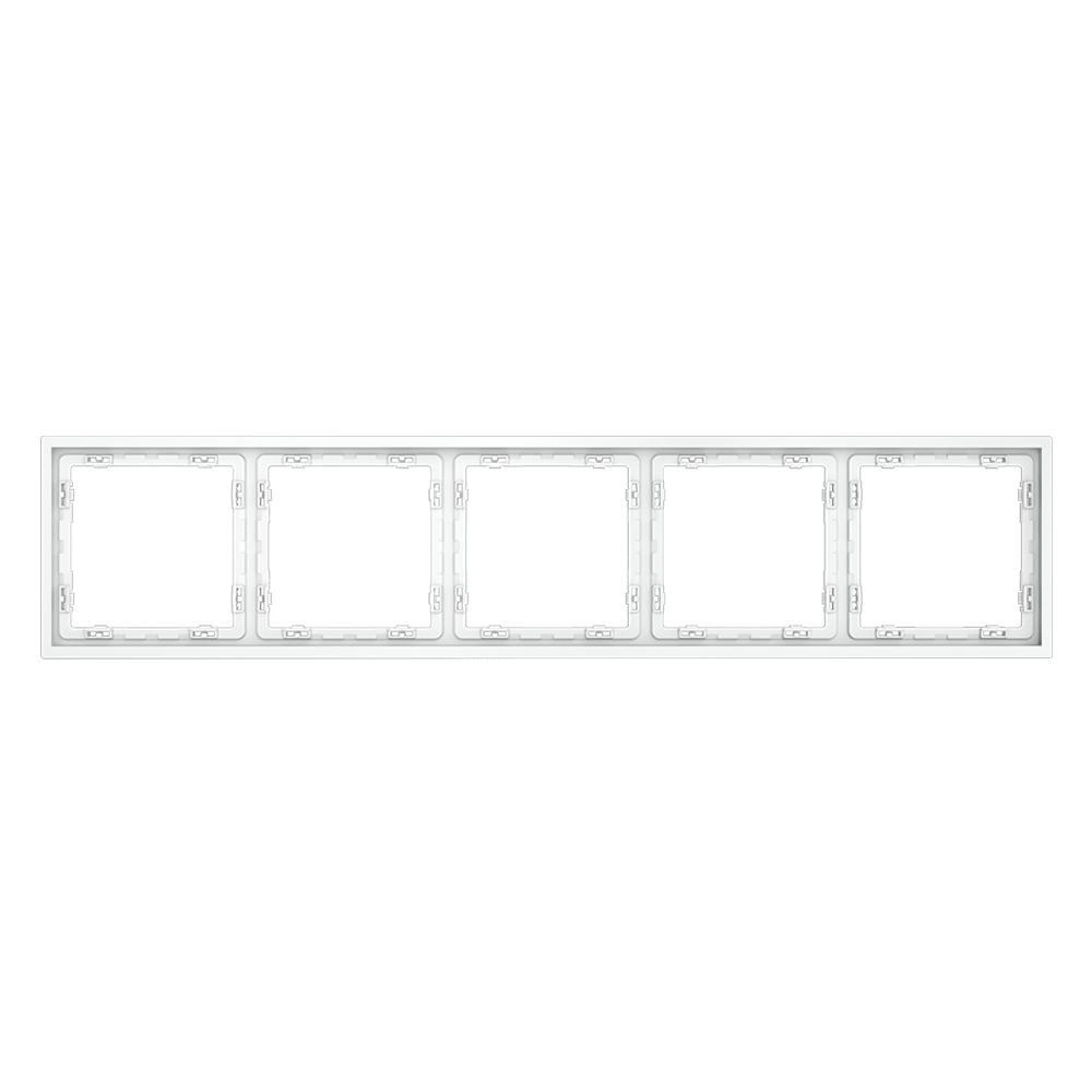 Рамка имеет длину 364 мм и ширину 73.8 мм, что делает её подходящей для установки на 5 постов. Изготовлена из пластика с покрытием Soft touch, которое придаёт изделию приятную на ощупь поверхность. Белый цвет изделия добавляет утонченности и сочетается с любым интерьером. Вес брутто составляет 0.08 кг, а вес нетто — 0.05 кг. На рамку предоставляется гарантия 1 год.