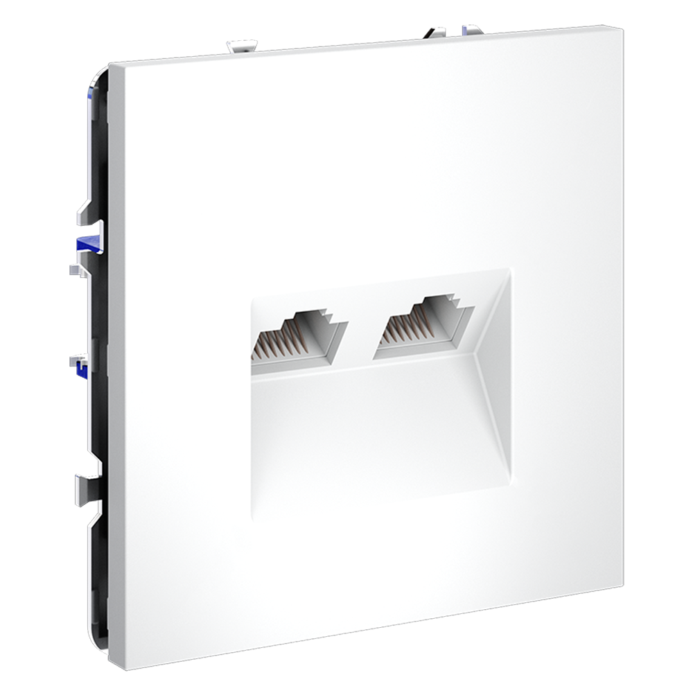Компьютерная розетка встраиваемая VOLTUM S70 двойная RJ45+RJ45 кат.6 в белом матовом исполнении — это идеальное решение для организации сетевых подключений как в домашних, так и в офисных условиях. Она обеспечивает надежное подключение компьютеров, принтеров, роутеров и других сетевых устройств к современным информационным системам. Корпус розетки изготовлен из высокопрочного поликарбоната, что гарантирует долговечность и устойчивость к внешним воздействиям. Данная модель оснащена двумя сетевыми разъемами RJ45, совместимыми с информационными сетями шестого поколения, поддерживающими скорость передачи данных до 10 Гбит/сек и стандарт 5e. Установка осуществляется через сетевой кабель (витую пару).
