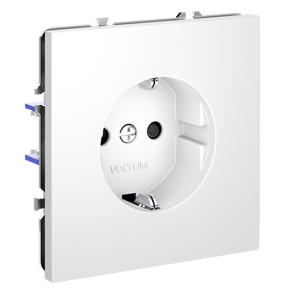 Розетка встраиваемая VOLTUM S70 с заземлением и защитными шторками, 16А (белый матовый) — это идеальное решение для тех, кто ценит надежность и безопасность в сочетании с современным дизайном. Благодаря легкости установки и демонтажа, а также стильному внешнему виду, розетки Voltum подходят для использования в различных помещениях, будь то дом, офис или иное пространство. Корпус изделия изготовлен из поликарбоната, который не подвержен разрушению под воздействием ультрафиолета и выдерживает повышенные температуры. Контактные пары из бронзы и заземляющие контакты с гальваническим покрытием обеспечивают долговечность и безопасную эксплуатацию.