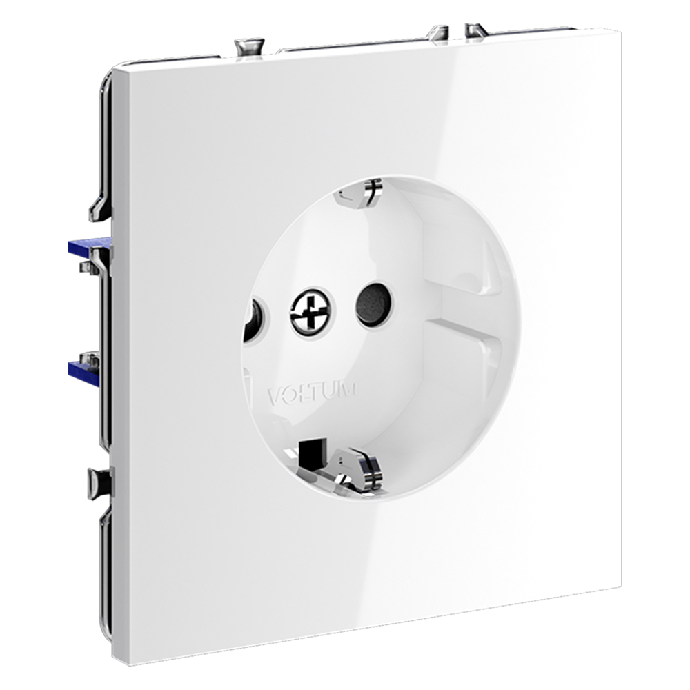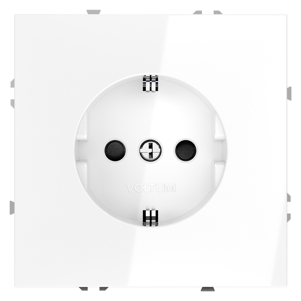Розетка встраиваемая VOLTUM S70 с заземлением и защитными шторками, 16А, белого глянцевого цвета — это идеальное сочетание стиля, качества и надежности. Она подходит для установки в домах, офисах и других помещениях, где требуется безопасное и долговечное электрическое подключение. Корпус и накладки выполнены из поликарбоната, который не только устойчив к ультрафиолету, но и способен выдерживать высокие температуры. Контактные пары из бронзы и заземляющие контакты с гальваническим покрытием обеспечивают надежную и бесперебойную передачу тока.