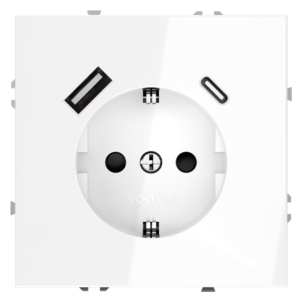 Встраиваемая розетка VOLTUM S70 с заземлением и защитными шторками — это идеальное решение для современного интерьера. Универсальная и практичная, она сочетает в себе классическую функциональность и современный подход к зарядке гаджетов благодаря встроенным USB-портам типа A и C. Глянцевый белый корпус из негорючего поликарбоната не только безопасен, но и прекрасно вписывается в любой интерьер, будь то офис или жилое пространство. Благодаря USB-розетке от Voltum, вы сможете забыть о громоздких блоках питания, освободив место и сохранив эстетичный вид помещения.