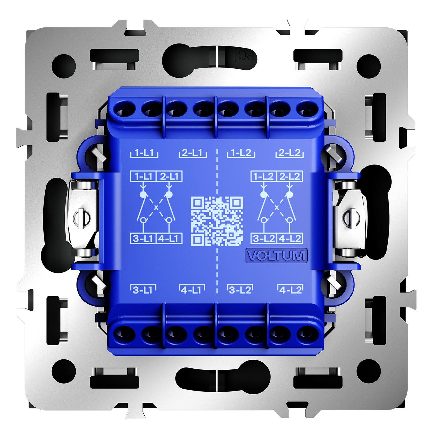 Перекрестный переключатель встраиваемый VOLTUM S70 двухклавишный 10А (черный матовый) — это идеальное решение для управления двумя группами света из нескольких точек. Этот переключатель используется в комплексе с проходными выключателями, что обеспечивает максимальное удобство при использовании в длинных коридорах, холлах и помещениях сложной планировки. Прочный термостойкий корпус из поликарбоната гарантирует долговечность и надежность устройства. Вы можете установить модуль как горизонтально, так и вертикально, а также комбинировать с другими устройствами серии S70 в общих рамках. Двухклавишный переключатель оснащен самозажимными клеммами, что позволяет быстро монтировать его без использования инструментов и управлять двумя группами света независимо.