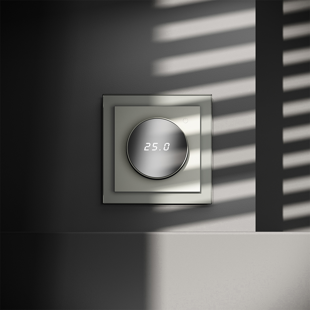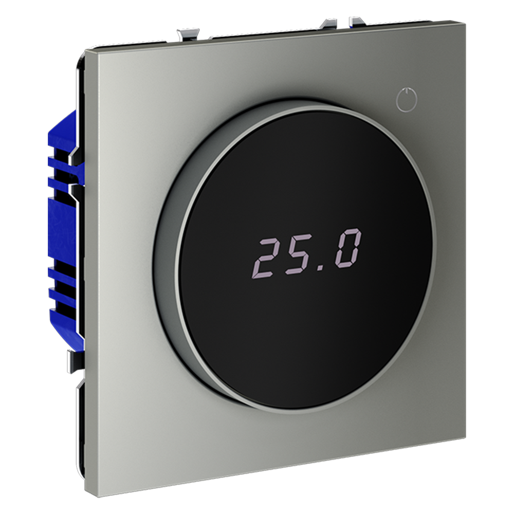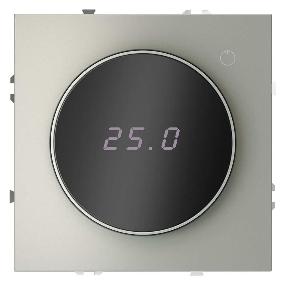 Этот терморегулятор предназначен для работы с электрическими тёплыми полами различных типов и рассчитан на нагрузку до 3500 Вт. Он оснащен дисплеем, который отображает температуру поверхности пола, что обеспечивает удобный контроль системы обогрева. Устройство также имеет светодиодную индикацию режима: красный индикатор означает подачу питания, а отсутствие индикации — достижение заданной температуры. В течение 15 минут после нагрева терморегулятор переходит в интеллектуальный «спящий режим», уменьшая яркость подсветки и сокращая энергопотребление. Регулировка осуществляется вращением панели управления.