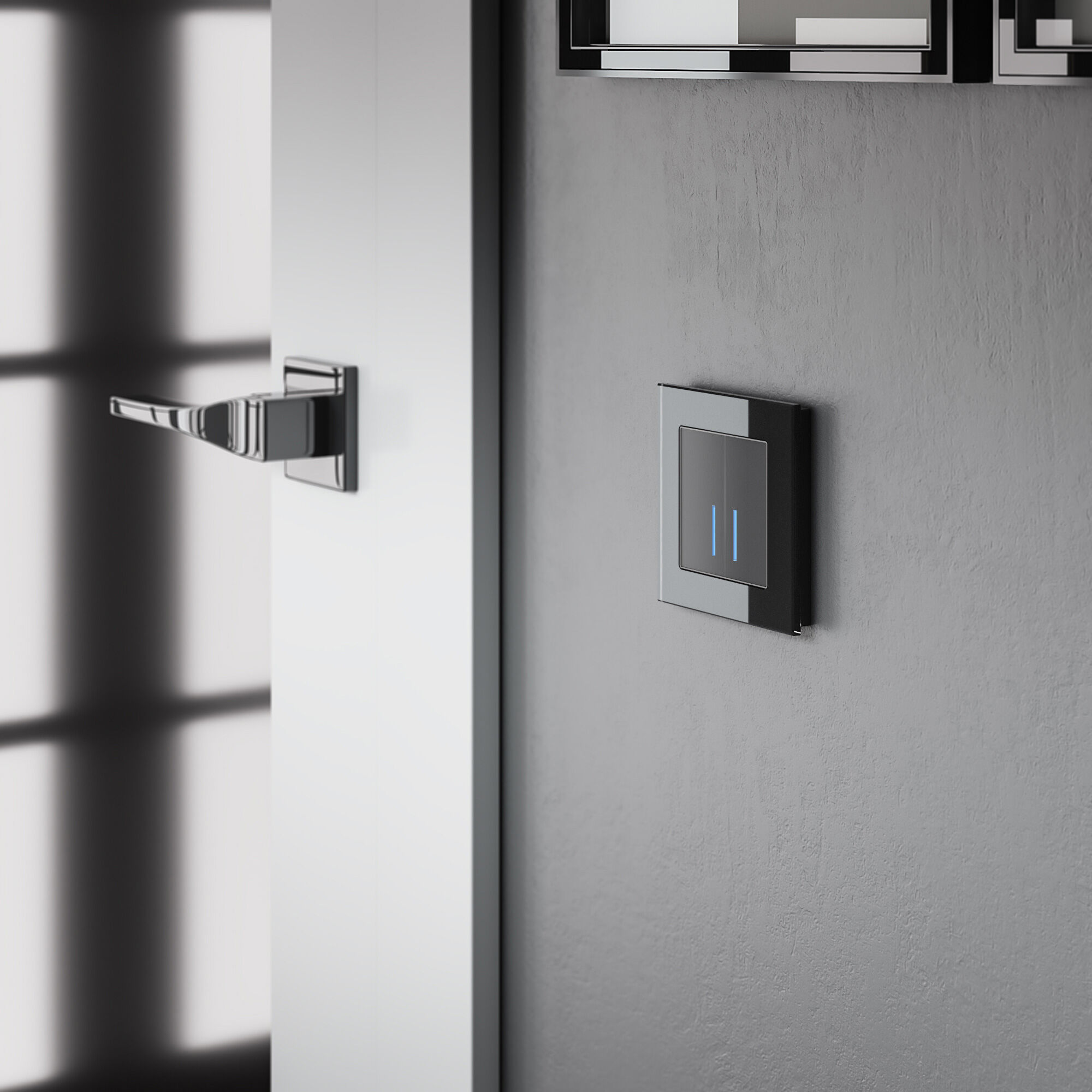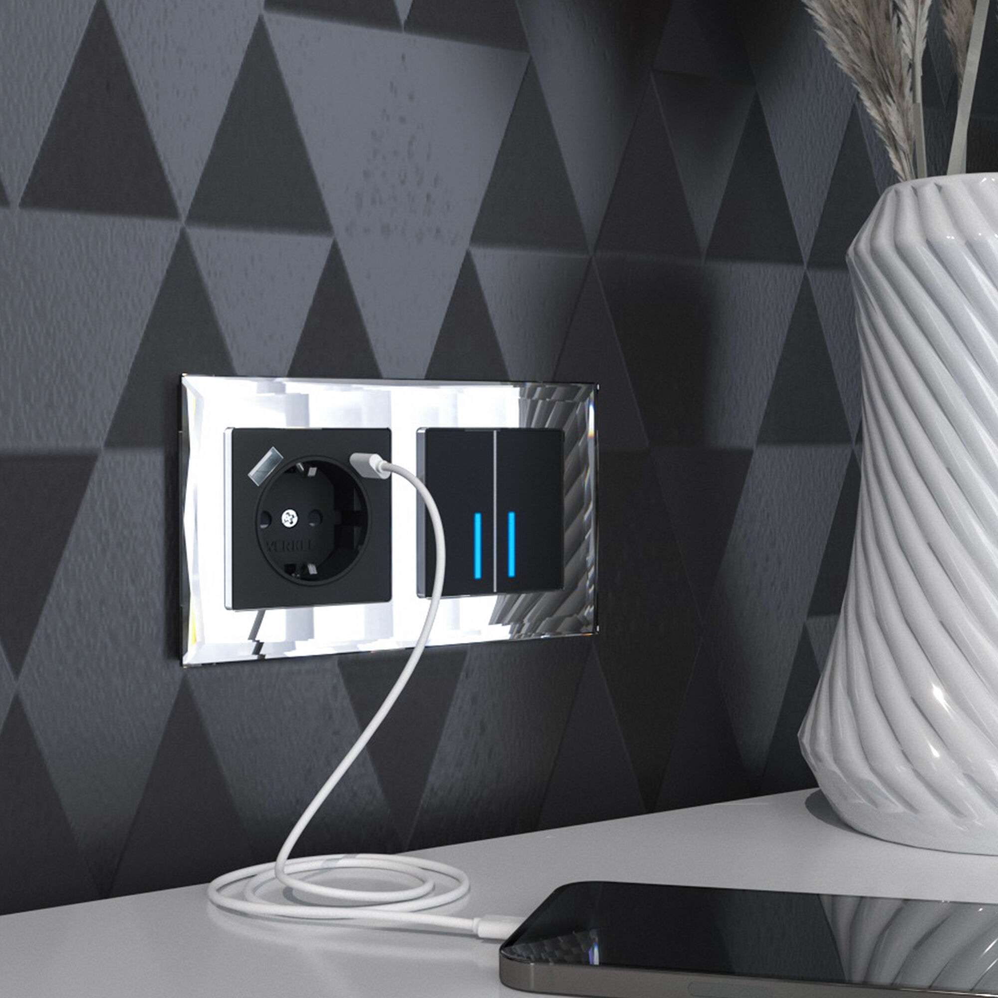 Сенсорный выключатель имеет стеклянную поверхность Soft-touch, которая обладает приятным тактильным эффектом. За счет матового фактурного покрытия лицевая панель не бликует и на ней не остается следов.