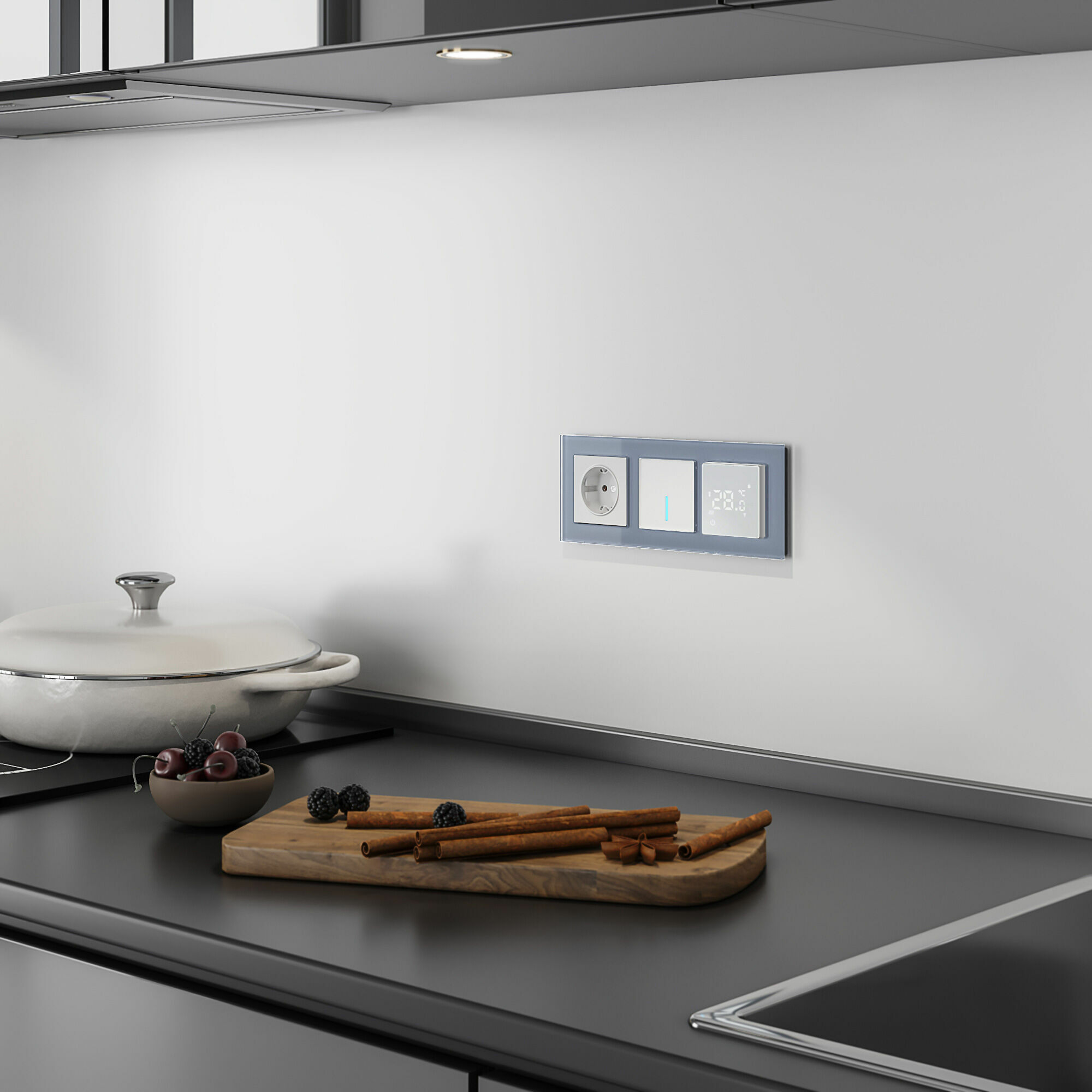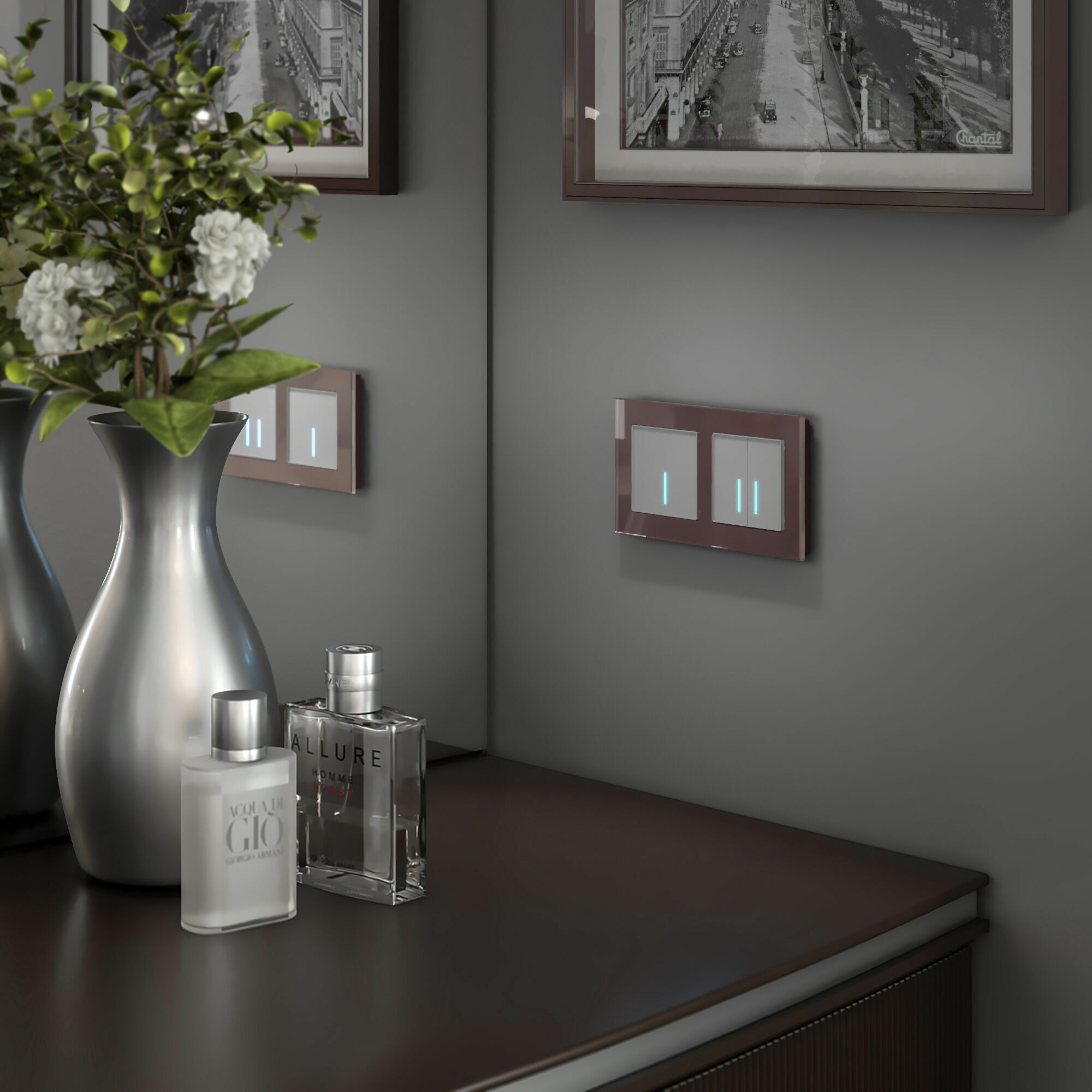 Сенсорный выключатель имеет стеклянную поверхность Soft-touch, которая обладает приятным тактильным эффектом. За счет матового фактурного покрытия лицевая панель не бликует и на ней не остается следов.