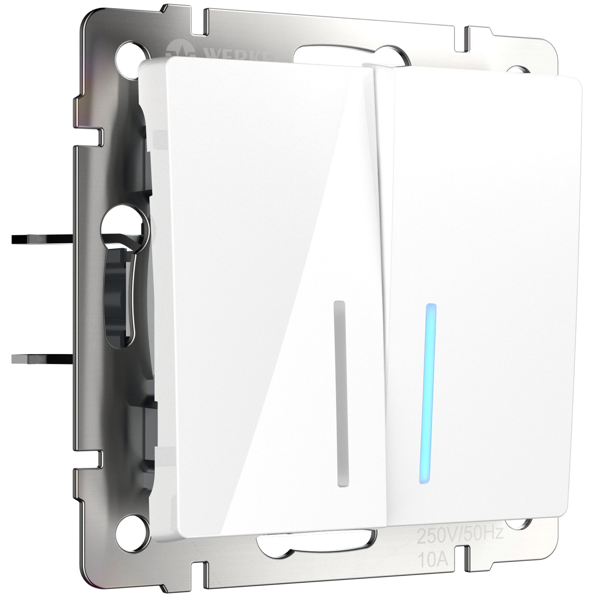 Встраиваемый двухклавишный проходной выключатель с LED подсветкой белый 10 А 250 В, 50 Гц WL01-SW-2G-2W-LED является важнейшим элементом любой домашней электросети, служащим для управления света. Такое электроустановочное изделие предназначено для управления одним источником света из нескольких мест. Приглушенное свечение светодиодов позволяет легко найти выключатель в темное время суток и помогает ориентироваться в квартире, доме или офисе. Выключатель представляет собой механизм нажимного типа, имеющий металлический суппорт и декоративные накладки.