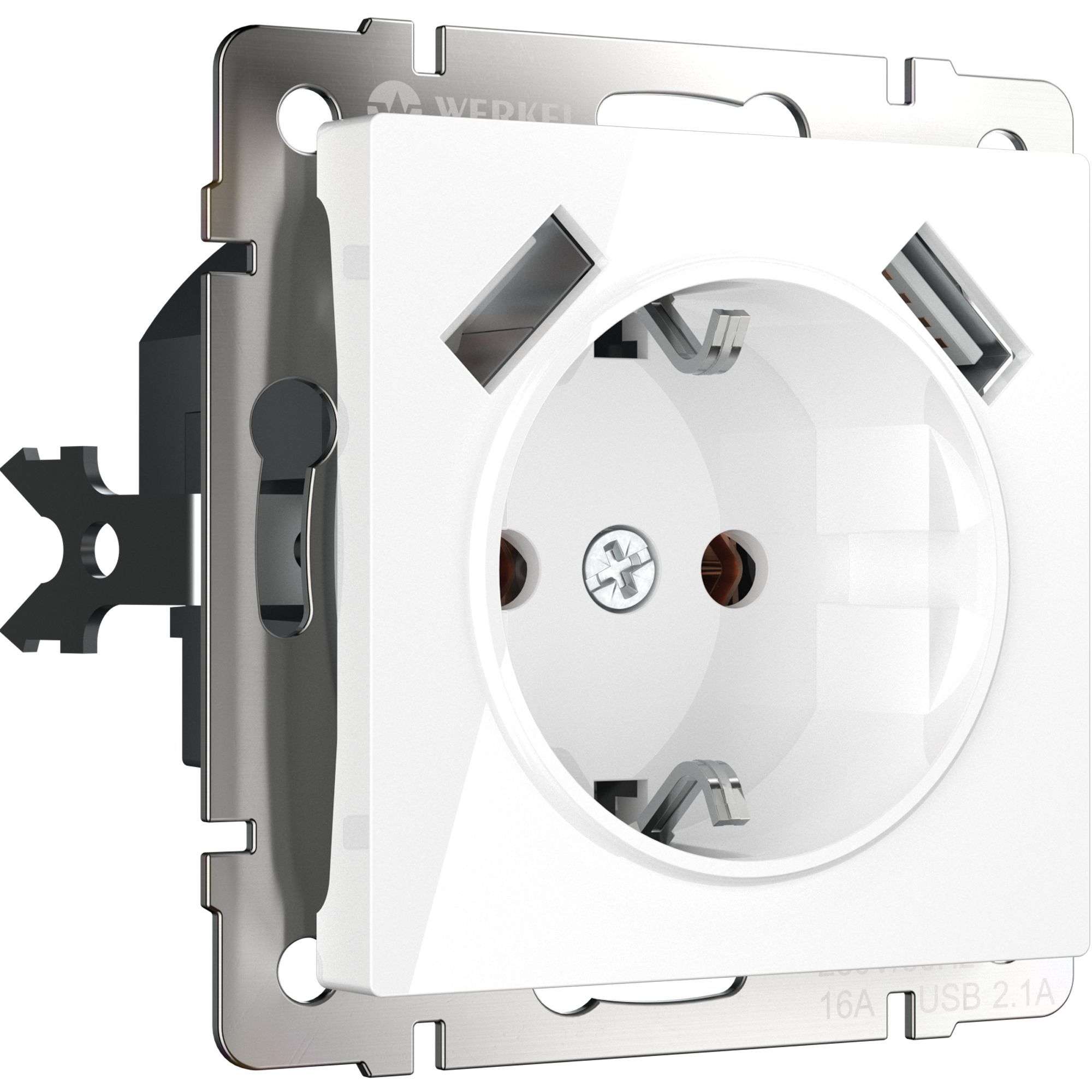Встраиваемая розетка с заземлением совместима со всеми рамками из коллекций Werkel™, характеризуется удобством использования и обеспечивает надежный контакт.