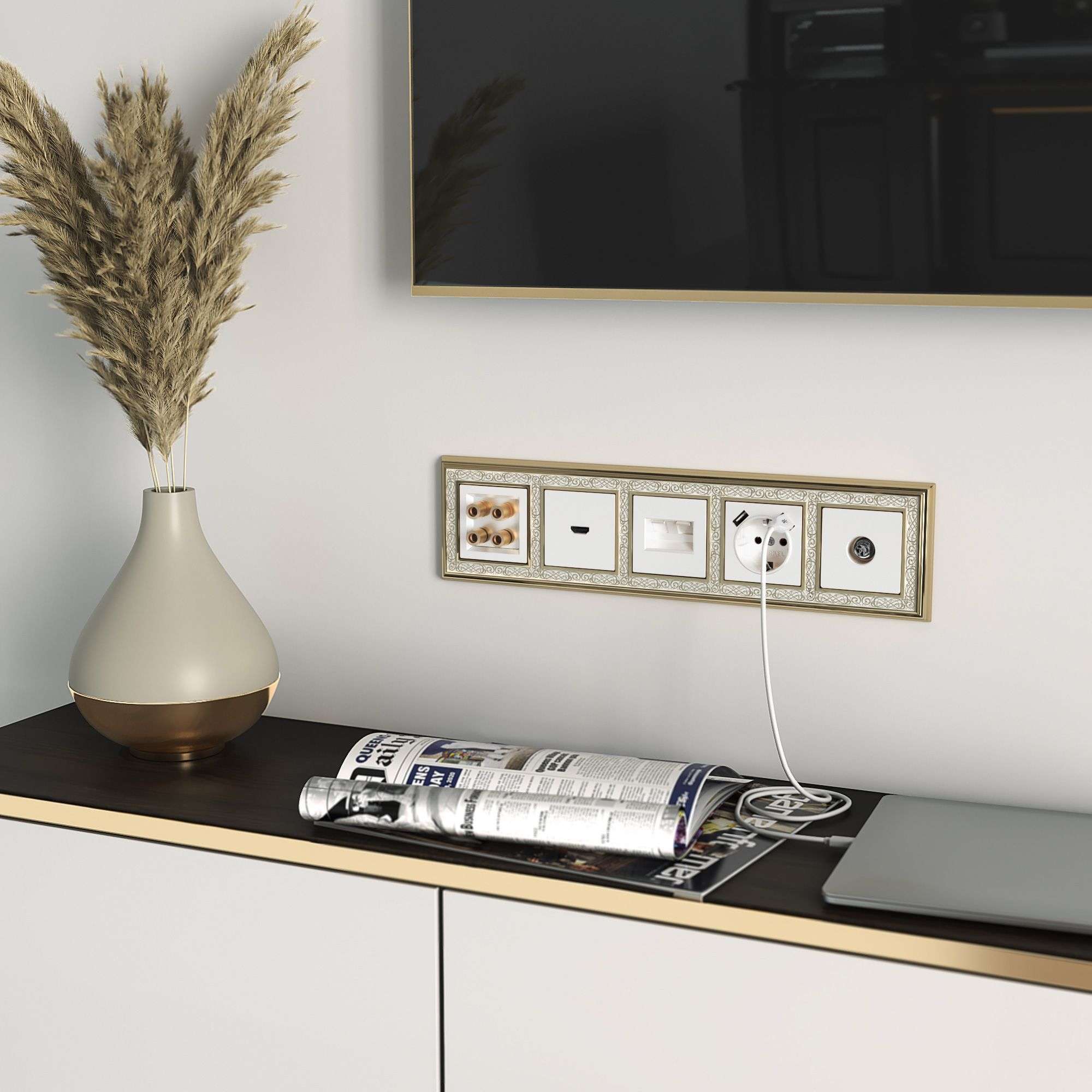 Электроустановочное изделие оснащено разъемом под коннектор RJ-45 на 8 контактов, обеспечивающий стабильное соединение. Встраиваемая интернет розетка совместима со всеми рамками из коллекций Werkel™.
