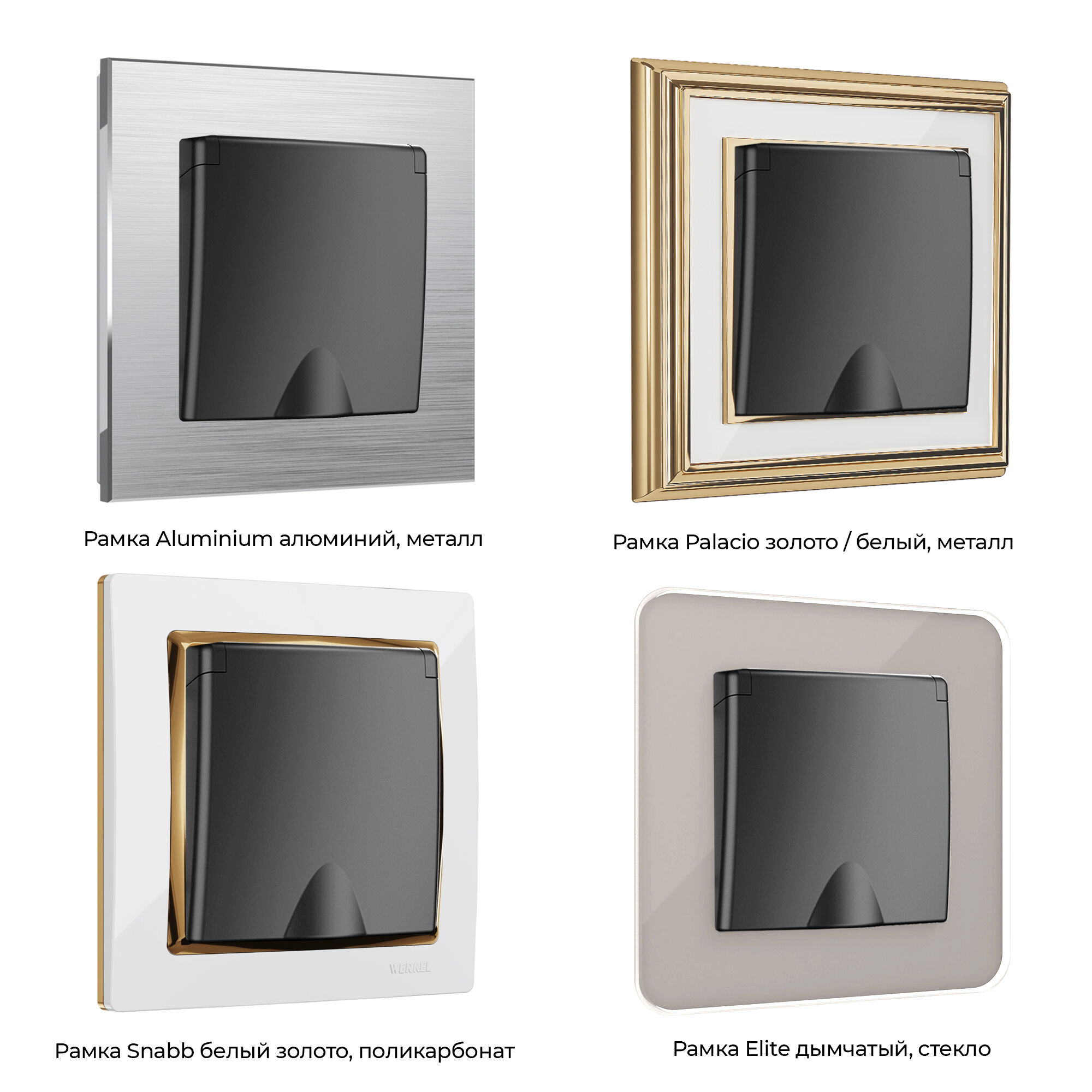 Внешняя лицевая панель выполнена из высококачественного поликарбоната, устойчивого к высоким температурам. Встраиваемая розетка с заземлением совместима со всеми рамками из коллекций Werkel™, характеризуется удобством использования и обеспечивает надежный контакт.