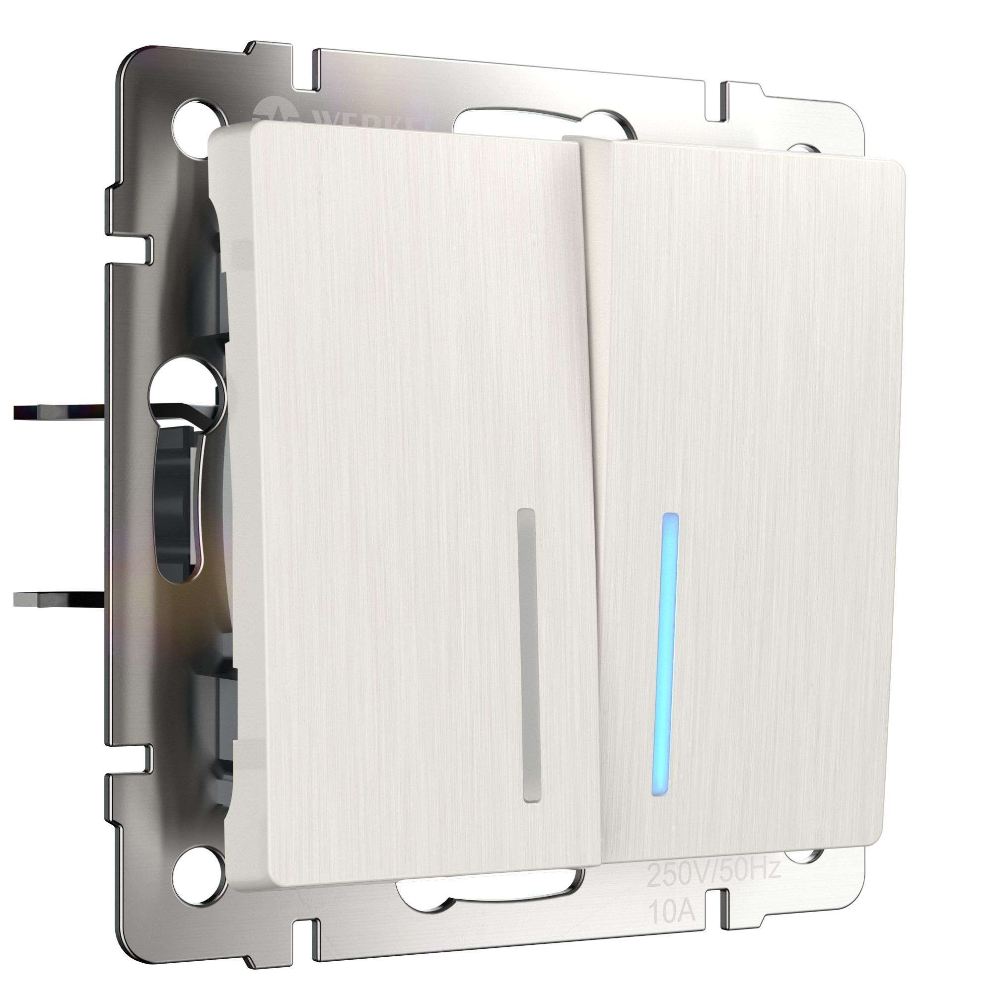 Встраиваемый двухклавишный выключатель с LED подсветкой перламутровый рифленый 10 А 250 В, 50 Гц WL13-SW-2G-2W-LED является важнейшим элементом любой домашней электросети, служащим для управления света. Приглушенное свечение светодиодов позволяет легко найти выключатель в темное время суток и помогает ориенироваться в квартире, доме или помещении. Выключатель представляет собой механизм нажимного типа, имеющий металлический суппорт и декоративные накладки.