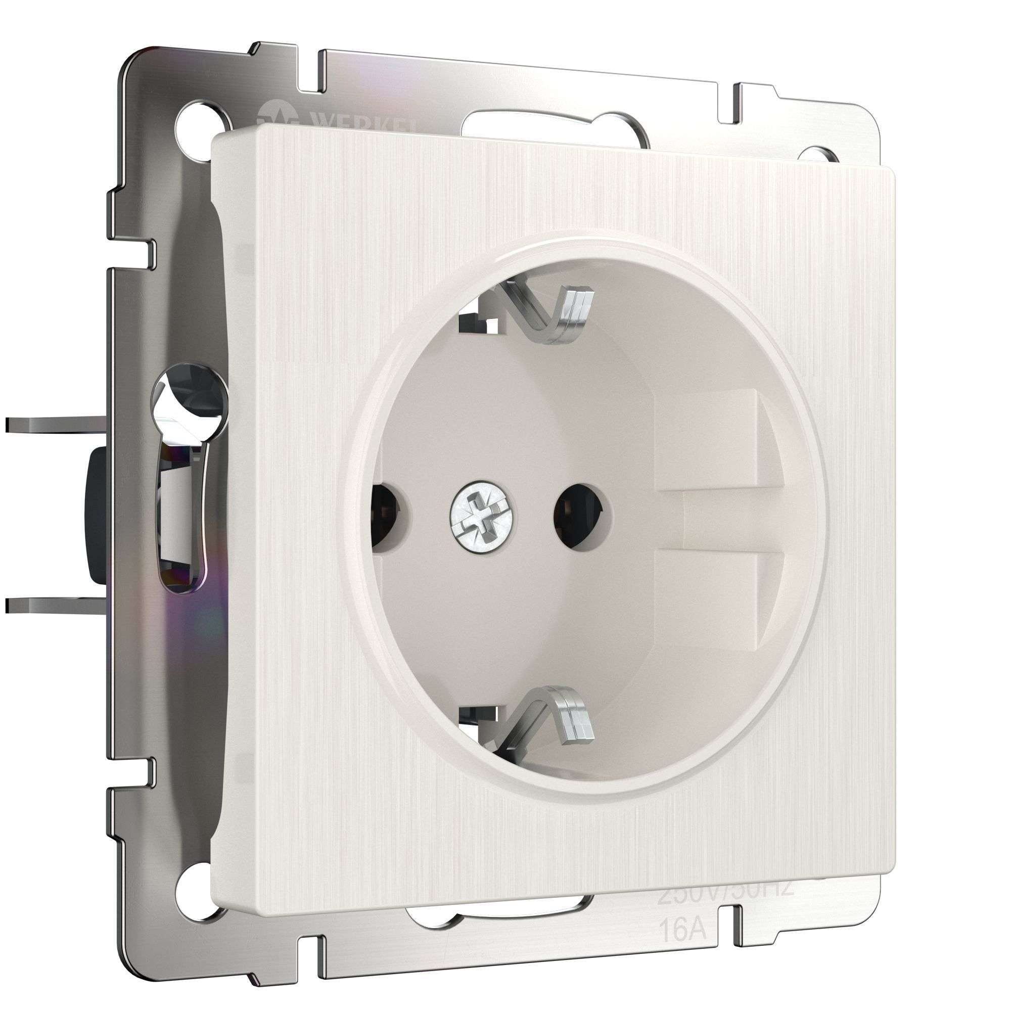 Встраиваемая розетка с заземлением совместима со всеми рамками из коллекций Werkel™, характеризуется удобством использования и обеспечивает надежный контакт.