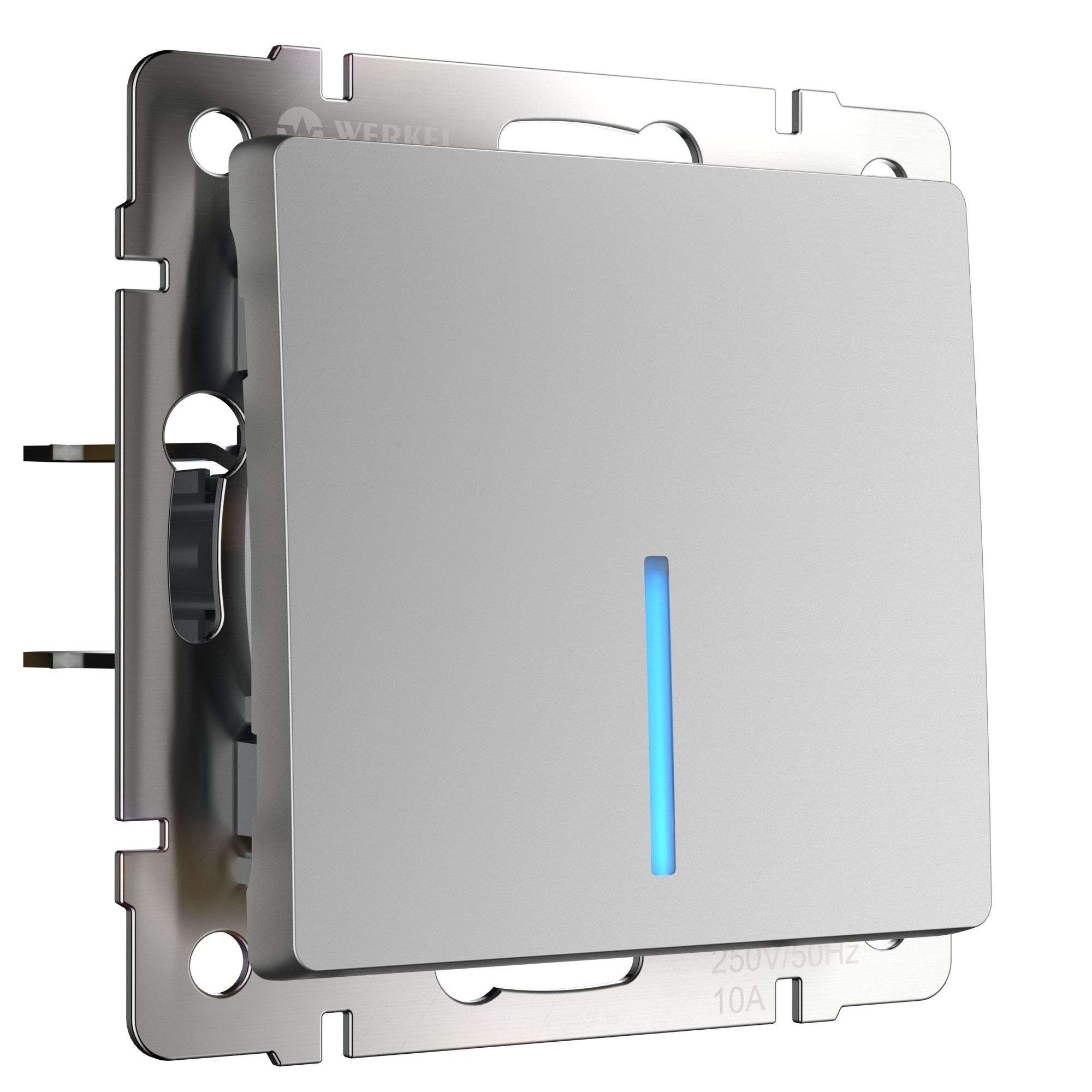 Встраиваемый одноклавишный проходной выключатель с LED подсветкой серебряный 10 А 250 В, 50 Гц WL06-SW-1G-2W-LED является важнейшим элементом любой домашней электросети, служащим для управления света. Такое электроустановочное изделие предназначено для управления одним источником света из нескольких мест. Приглушенное свечение светодиодов позволяет легко найти выключатель в темное время суток и помогает ориентироваться в квартире, доме или помещении. Выключатель представляет собой механизм нажимного типа, имеющий металлический суппорт и декоративные накладки.