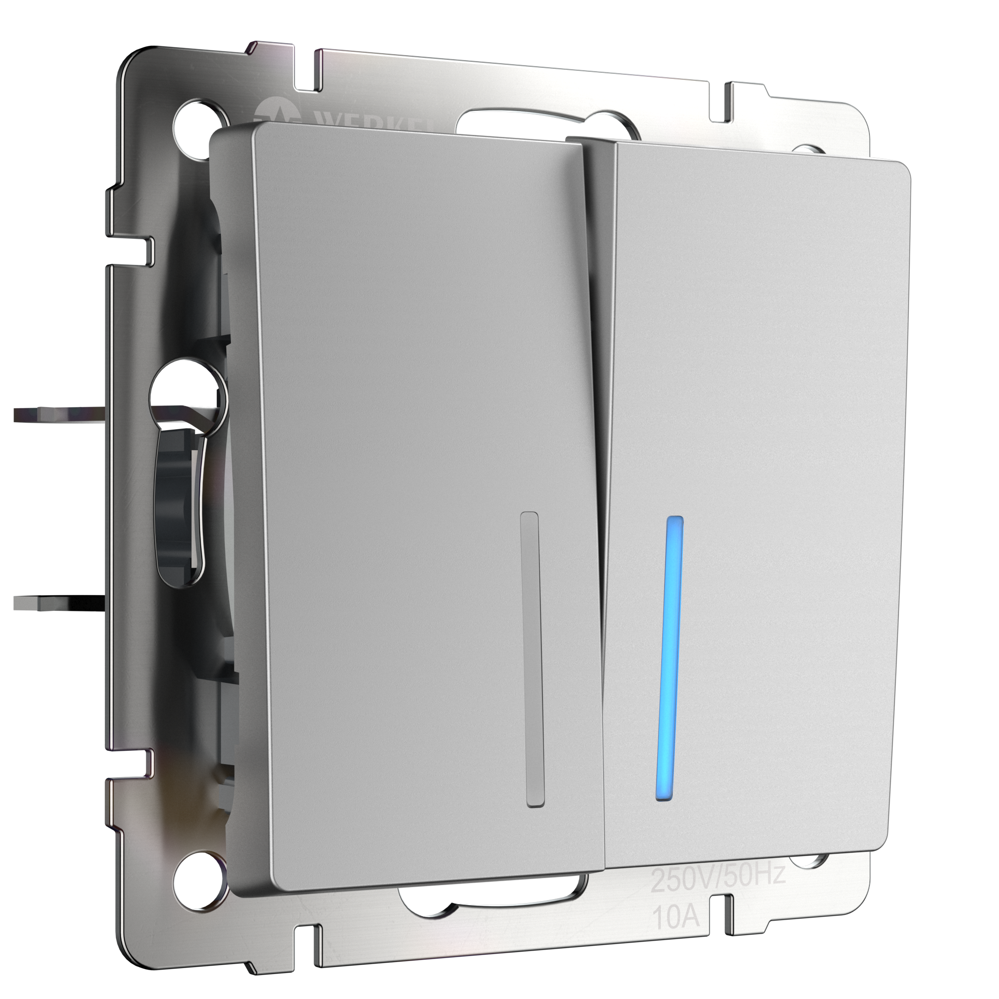 Встраиваемый двухклавишный проходной выключатель с LED подсветкой серебряный 10 А 250 В, 50 Гц WL06-SW-2G-2W-LED является важнейшим элементом любой домашней электросети, служащим для управления света. Такое электроустановочное изделие предназначено для управления одним источником света из нескольких мест. Приглушенное свечение светодиодов позволяет легко найти выключатель в темное время суток и помогает ориентироваться в квартире, доме или офисе. Выключатель представляет собой механизм нажимного типа, имеющий металлический суппорт и декоративные накладки.