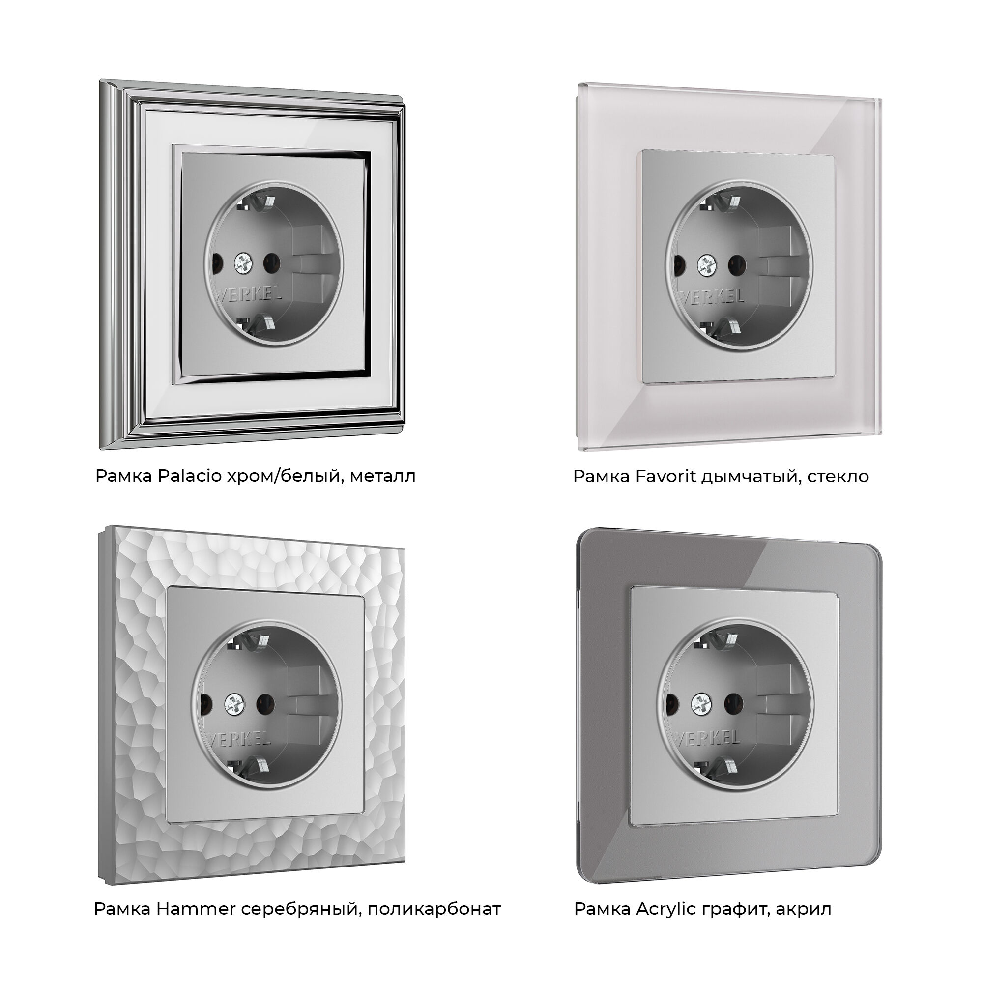 Внешняя лицевая панель выполнена из высококачественного поликарбоната, устойчивого к высоким температурам. Встраиваемая розетка с заземлением совместима со всеми рамками из коллекций Werkel™, характеризуется удобством использования и обеспечивает надежный контакт.