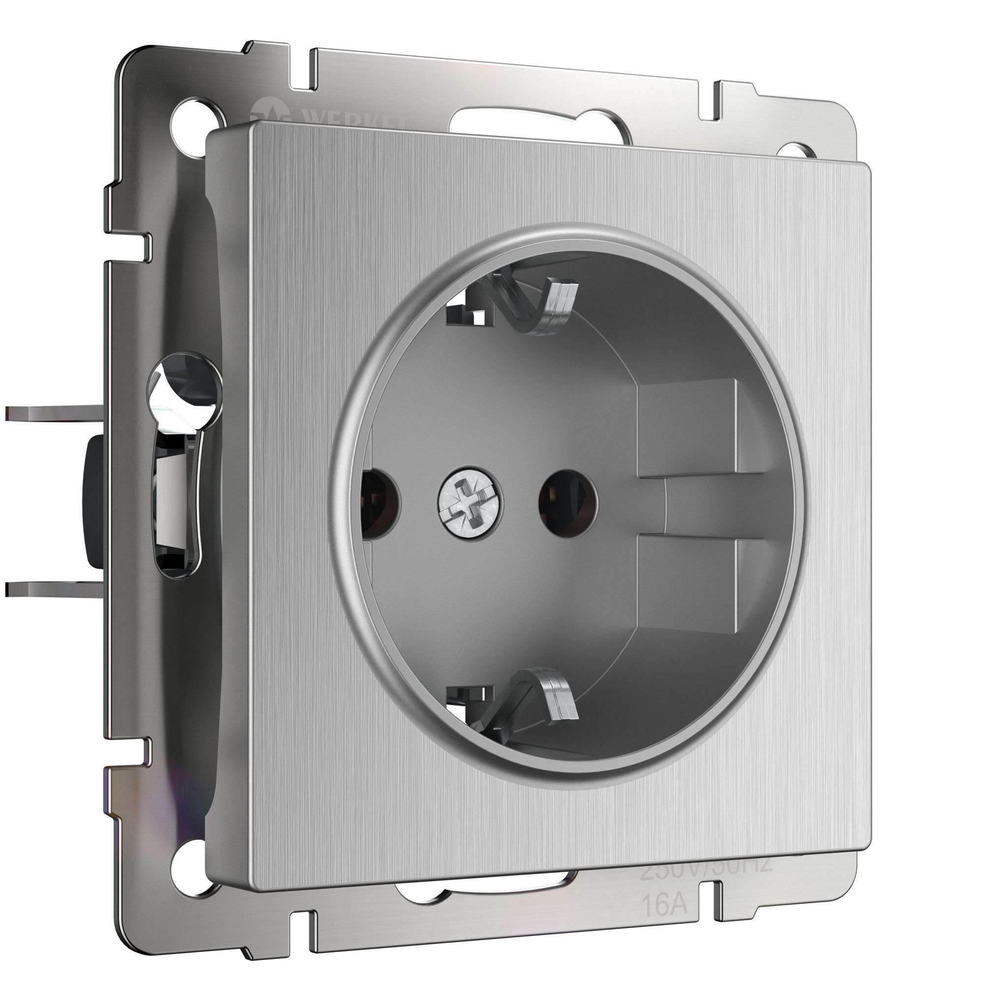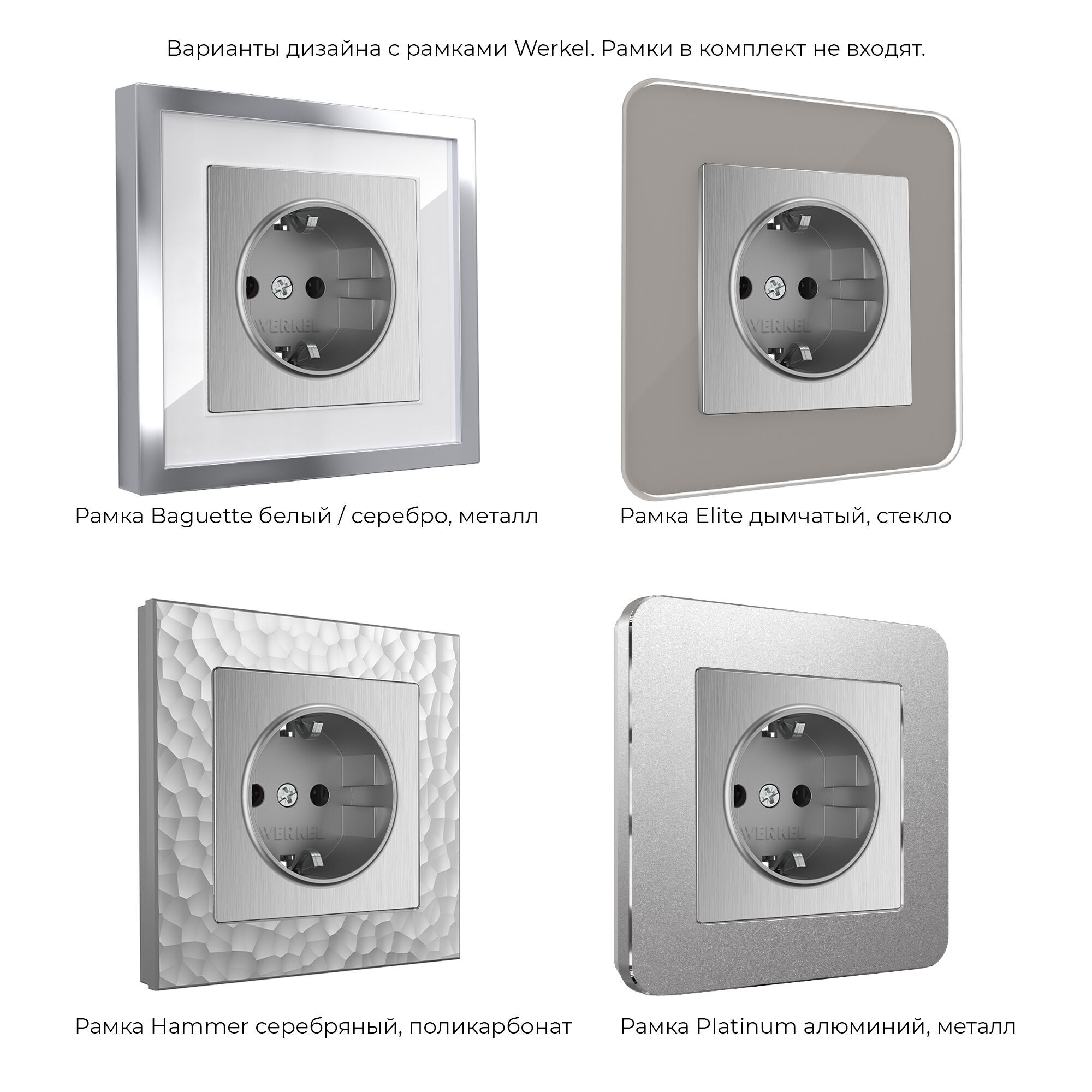 Встраиваемая розетка с заземлением совместима со всеми рамками из коллекций Werkel™, характеризуется удобством использования и обеспечивает надежный контакт.