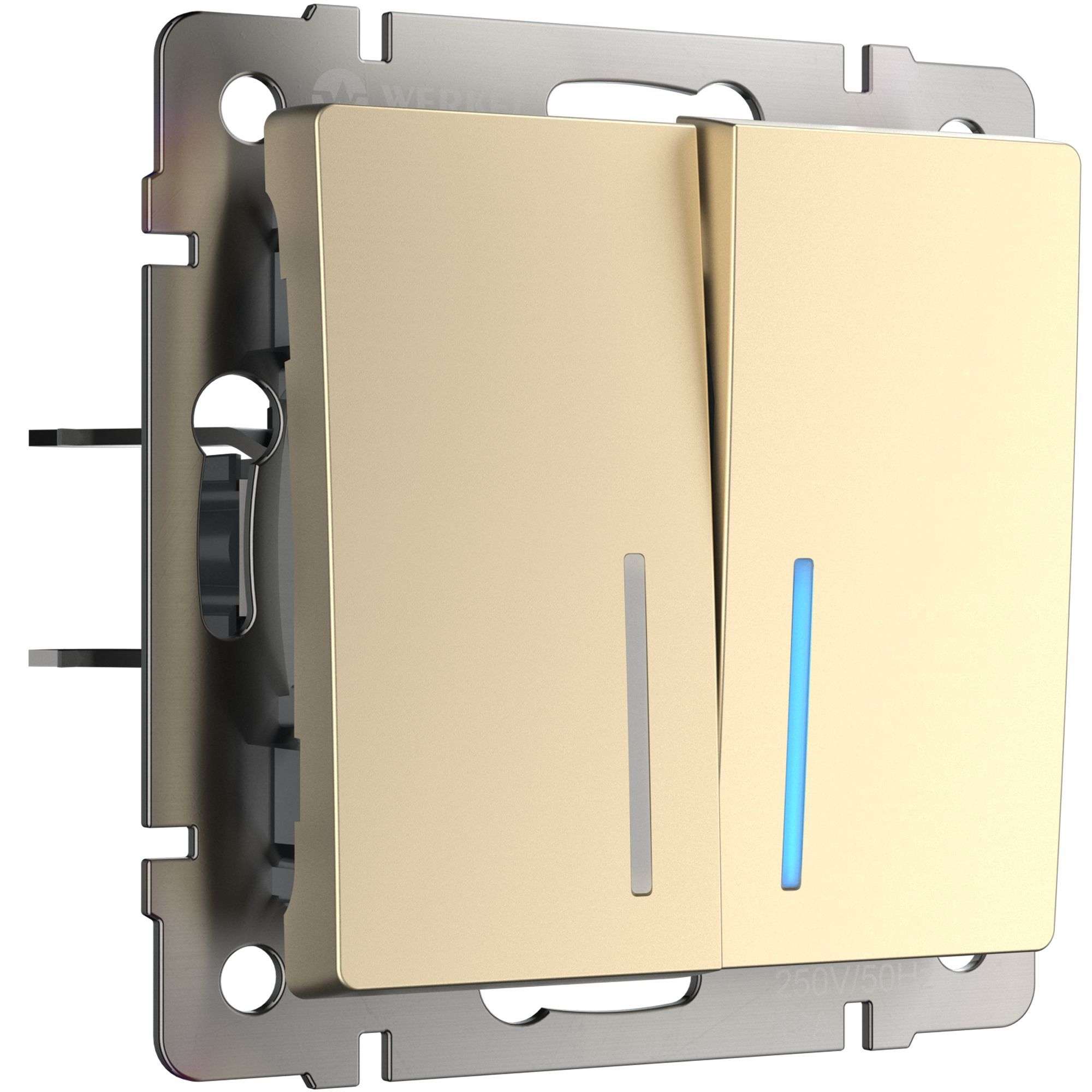 Встраиваемый двухклавишный выключатель с LED подсветкой шампань 10 А 250 В, 50 Гц W1120111 является важнейшим элементом любой домашней электросети, служащим для управления света. Приглушенное свечение светодиодов позволяет легко найти выключатель в темное время суток и помогает ориентироваться в квартире, доме или помещении.