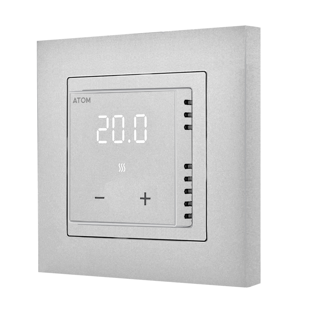 Цифровой терморегулятор ATOM Delta алюминий 16А CN2678 — это надежное устройство для управления электрическим теплым полом в вашем доме. Оно позволяет легко контролировать температуру напольного покрытия, обеспечивая комфортные условия в любое время суток. Современный дизайн и компактные размеры терморегулятора делают его гармоничным дополнением любого интерьера и позволяют интегрировать устройство в рамки большинства известных производителей электрооборудования.