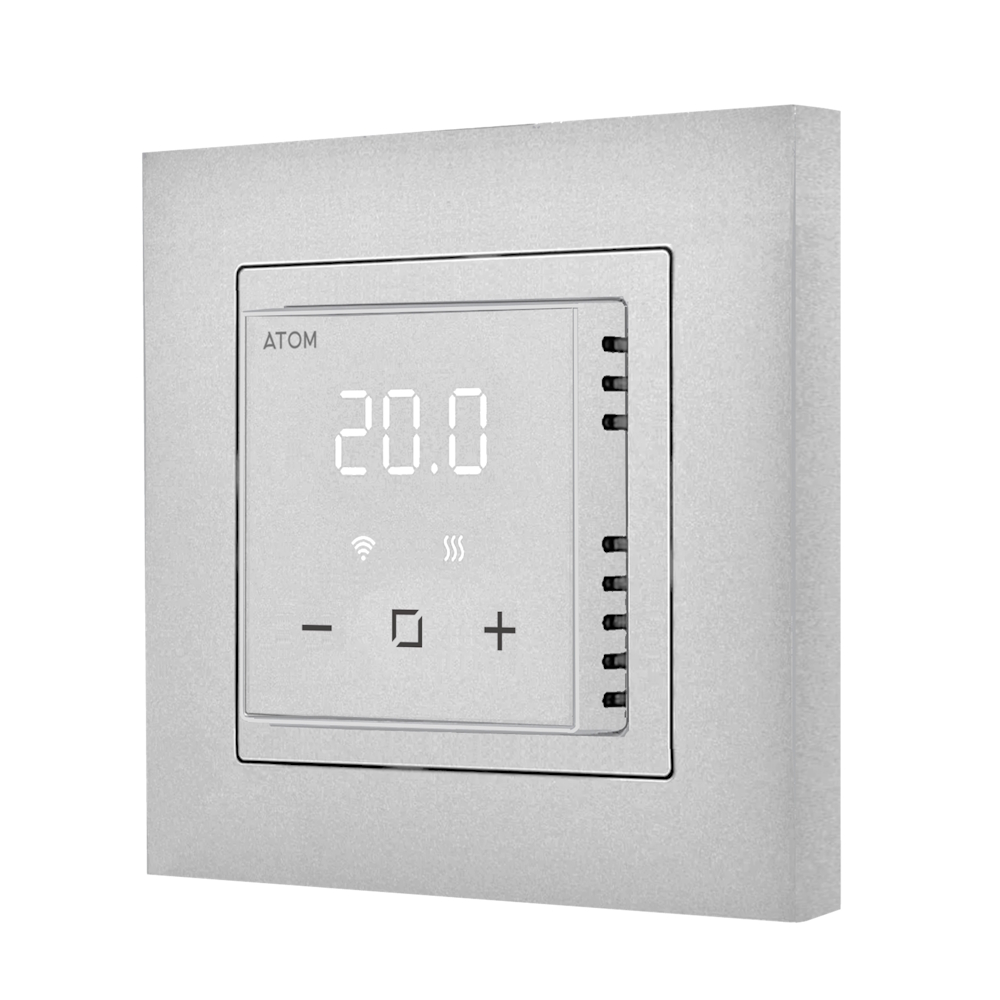Программируемый терморегулятор ATOM Delta с Wi-Fi алюминий 16А CN2681 — современное решение для управления электрическим теплым полом. Устройство позволяет точно регулировать температуру напольного покрытия, обеспечивая комфорт в доме, квартире или офисе в любое время суток. Серебристый цвет и стильный дизайн гармонично вписываются в интерьер, а компактные размеры делают интеграцию в рамки большинства известных производителей электрооборудования простой и удобной.