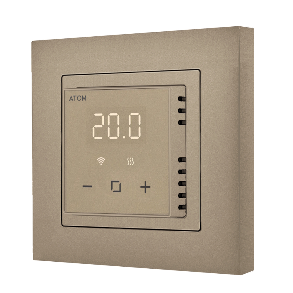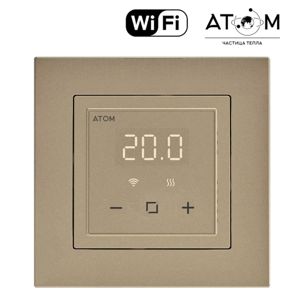 Программируемый терморегулятор ATOM Delta шампань 16А CN2682 с функцией Wi-Fi — идеальное решение для управления электрическим теплым полом в вашем доме, квартире или офисе. Устройство обеспечивает точное регулирование температуры напольного покрытия, создавая комфортный микроклимат в любое время дня и ночи. Элегантный цвет шампань и современный дизайн гармонично вписываются в интерьер, а компактные размеры позволяют установить терморегулятор в декоративные рамки популярных производителей электрооборудования.