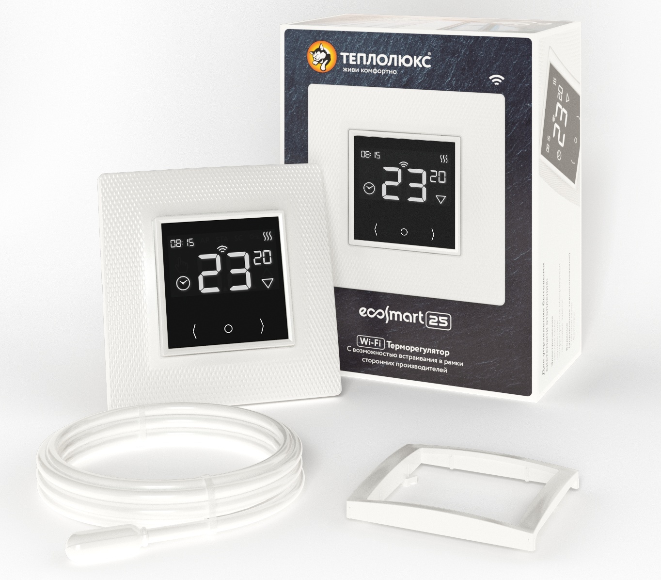 "Теплолюкс" EcoSmart 25 - программируемый сенсорный терморегулятор на Wi-Fi предназначен для управления бытовыми электрическими системами отопления – теплые полы, конвекторы, полотенцесушители.